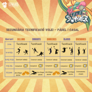 Gaudeix de totes les activitats d’un casal d’estiu combinant-les amb 2 hores diàries de tecnificació en padel (de 9 a 11 h).